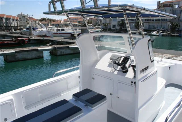 The GECAT 21.6′ Walkaround Cabin is a high-performance 23 ft (6.95m) offshore boat designed for serious anglers and boating enthusiasts. With a 2.75m beam, fully foamed hull, and XL (25") transom, this vessel offers unbeatable stability, safety, and strength. Built with 5 foamed GRP bulkheads, dual 100L inboard fuel tanks (roto-moulded cross-linked polyethylene), and marine-grade 316 stainless steel hardware, it’s ready for tough conditions.